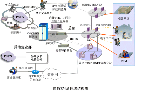 因此需要對現(xiàn)有分散的資源進行大規(guī)模整合,并對包括網(wǎng)上交易用戶在內(nèi)的各種客戶提供全方位、高層次的服務,而呼叫中心的建設就是一個有效手段。伴隨中國證券市場同步成長的國通證券意識到這個問題從領導到員工都有深切的憂患意識:如何提供服務質(zhì)量和管理水平。經(jīng)過充分的調(diào)研及對國內(nèi)外眾多廠商的綜合比較,最后選擇了華為INTESS平臺來組建交換機方式的呼叫中心--E號通。