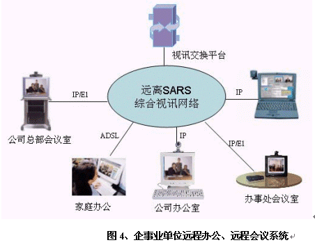 非典型肺炎不但對(duì)國(guó)家的經(jīng)濟(jì)造成了重大的損失,而且使得全社會(huì)對(duì)"非典"噤若寒蟬,大家對(duì)出差甚至外出都異常緊張。華為公司提供為個(gè)人家庭辦公、探親訪友的遠(yuǎn)程多媒體通信解決方案,大家在家里即可通過(guò)網(wǎng)絡(luò)和親朋好友"面對(duì)面"交流、在家中辦公。減少外出、遠(yuǎn)離人員眾多地區(qū),有效預(yù)防非典。對(duì)于有條件的用戶群可以推薦在現(xiàn)有寬帶線路或新增寬帶線路上購(gòu)買軟件,即可實(shí)現(xiàn)親朋好友間的個(gè)人視頻通信;對(duì)于暫不具備寬帶條件的群體,如學(xué)生等,可以考慮在重點(diǎn)營(yíng)業(yè)廳設(shè)立專門會(huì)議室或者視訊公話亭等,提供預(yù)約視頻服務(wù),滿足其溝通的需求。