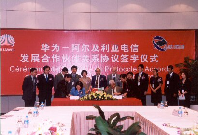 近日,阿爾及利亞電信董事長(zhǎng)兼總裁謝第赫(CHETTIH)先生與中國(guó)華為董事長(zhǎng)孫亞芳女士分別代表雙方公司,簽署了建立全面合作戰(zhàn)略伙伴關(guān)系的協(xié)議。雙方表示,將在CDMA、GSM、交換接入、傳輸和數(shù)據(jù)等各領(lǐng)域開展更全面深入的合作,同時(shí)強(qiáng)調(diào)了在技術(shù)交流、培訓(xùn)及業(yè)務(wù)方面的交流與合作。