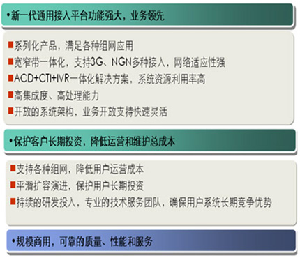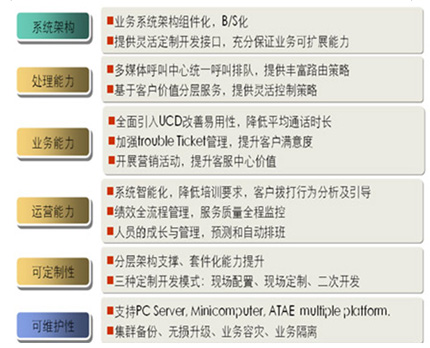 從服務(wù)內(nèi)容來(lái)看,聯(lián)絡(luò)中心建立了一個(gè)統(tǒng)一面向客戶的綜合性服務(wù)平臺(tái),實(shí)現(xiàn)涵蓋公司各項(xiàng)主要產(chǎn)品和業(yè)務(wù)的專業(yè)信息咨詢與交易功能,并實(shí)現(xiàn)人工服務(wù)、業(yè)務(wù)咨詢、業(yè)務(wù)處理、投訴處理、建議受理、預(yù)約服務(wù)、客戶回訪等一體化的話務(wù)處理與管理,為客戶提供多樣化、全方位、個(gè)性化的接入方式與服務(wù)內(nèi)容。