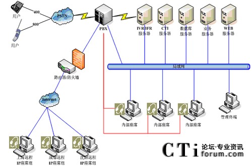 呼叫中心是一種基于CTI技術(shù)、充分利用通信網(wǎng)和計算機網(wǎng)的多項功能集成,并與企業(yè)連為一體的一個完整的綜合信息服務系統(tǒng),利用現(xiàn)有的各種先進的通信手段,效地為客戶提供高質(zhì)量、高效率、全方位的服務。表面上看,呼叫中心是企業(yè)在最外層加上了一個服務層。實際上,它不僅對企業(yè)的外部用戶具有服務功能,同時也為企業(yè)內(nèi)部的管理、服務、調(diào)度、增值起到非常重要的協(xié)調(diào)作用。