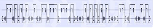 模擬信號(hào)的形成比較簡單、直觀,但在傳輸過程中容易受到外界干擾發(fā)生畸變,從而降低通信質(zhì)量;數(shù)字通信是與模擬通信不同的另一種通信方式。數(shù)字信號(hào)的傳輸、記錄、處理都采用數(shù)字(“0”和“1”)信號(hào)。由于數(shù)字信號(hào)抗干擾強(qiáng)、生產(chǎn)的畸變小,也容易消除,因而可以大大提高通信質(zhì)量。使用PCM(Pulse-Code Modulation)調(diào)制后的采樣聲波如下所示: