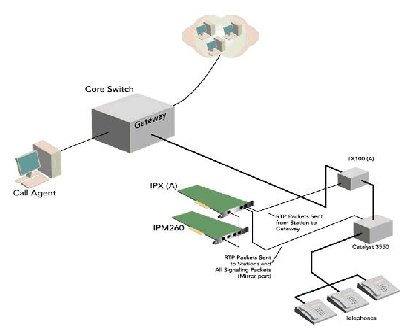 SmartWORKS IPX由Ai-Logix研發(fā)的專用于IP電話錄音的重要產(chǎn)品,具有數(shù)據(jù)包過濾及轉(zhuǎn)發(fā)媒體包的功能。IPX可支持多種IP協(xié)議,設(shè)有3個接口,其中2個用以監(jiān)控話機,話機數(shù)量可多達120個,監(jiān)控數(shù)據(jù)包括上行及下行的RTP;第3個接口用以媒體輸出。IPX和IPM260配合使用,將截取的媒體數(shù)據(jù)包轉(zhuǎn)發(fā)給該卡進行處理,從而可以完成錄音全過程。