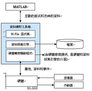 數(shù)據(jù)采集工具箱包括三個(gè)模塊分別為: M-File 函式集, 數(shù)據(jù)采集引擎(Data Acquisition