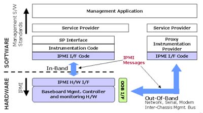 trap等來(lái)通知相關(guān)人員處理問(wèn)題。另外,通過(guò)硬件及軟件的配合,IPMI增加了遠(yuǎn)程管理及系統(tǒng)回復(fù)的功能,讓系統(tǒng)管理者可以在非機(jī)器放置地得知系統(tǒng)目前是處于何種狀態(tài),如關(guān)機(jī)、開(kāi)機(jī)中、OS當(dāng)機(jī)等,并且下達(dá)開(kāi)機(jī)、關(guān)機(jī)和重新開(kāi)機(jī)等命令。