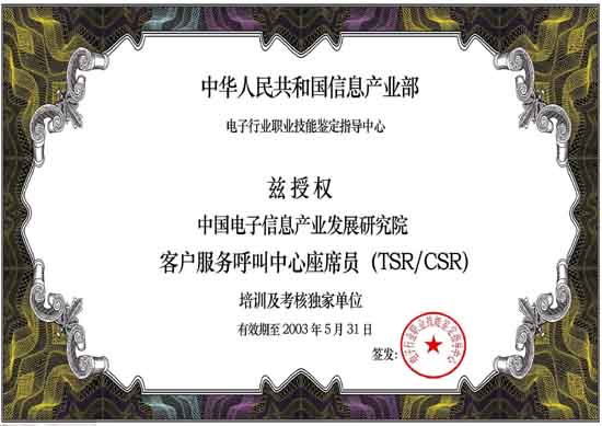 中國(guó)電子信息產(chǎn)業(yè)發(fā)展研究院職業(yè)技能培訓(xùn)部是中國(guó)電子信息產(chǎn)業(yè)發(fā)展研究院旗下專業(yè)從事IT職業(yè)技能培訓(xùn)的機(jī)構(gòu)。呼叫中心職業(yè)技能培訓(xùn)工作是培訓(xùn)中心常年開展的主要培訓(xùn)項(xiàng)目。培訓(xùn)中心受信息產(chǎn)業(yè)部委托,負(fù)責(zé)全國(guó)范圍內(nèi)"呼叫中心客戶服務(wù)座席員"的授權(quán)培訓(xùn)及考核工作。既是呼叫中心行業(yè)基礎(chǔ)操作人員培訓(xùn)及考核的權(quán)威機(jī)構(gòu),又是配合行業(yè)管理、全面支撐和提升整個(gè)呼叫中心產(chǎn)業(yè)的服務(wù)機(jī)構(gòu)。