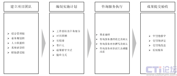 賽迪呼叫顧問咨詢項(xiàng)目團(tuán)隊(duì)主要通過以下步驟來協(xié)助該銀行電子商務(wù)中心的建設(shè)工作順利完成。