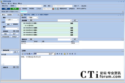 來電同步顯示客戶詳細資料、以往服務和最近通話記錄(客戶呼入時,系統(tǒng)立刻自動查詢號碼是否存在于客戶資料庫中,若存在,則自動彈出所服務客戶的基本資料與最近通話記錄,如果不存在,則彈出添加新客戶窗口。),可直接編輯和協(xié)同處理。并可進行多種即席查詢,支持坐席開展服務。