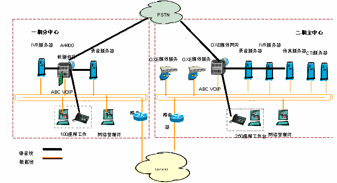 基礎(chǔ)語(yǔ)音系統(tǒng)采用阿爾卡特OmniPCX Enterprise語(yǔ)音通信平臺(tái),它采用分布式的語(yǔ)音體系架構(gòu),完全融合IP技術(shù),并可集成傳統(tǒng)的TDM語(yǔ)音。OmniPCX Enterprise提供開(kāi)放的標(biāo)準(zhǔn)和靈活的擴(kuò)展能力,并提供99.999%的高可靠性。讓用戶(hù)靈活的配置其座席的地理位置和通信方式,并保證系統(tǒng)運(yùn)行安全可靠。OmniPCX Enterprise交換機(jī)(二期)計(jì)劃采用Appliance Server呼叫服務(wù)器雙備份結(jié)構(gòu),提供RSI接口與GENESYS相連,以及并線錄音系統(tǒng)接口。今后,項(xiàng)目還將采用先進(jìn)的阿爾卡特-My Phone IP WEB軟電話(huà),提高內(nèi)部通信能力,優(yōu)化業(yè)務(wù)流程。