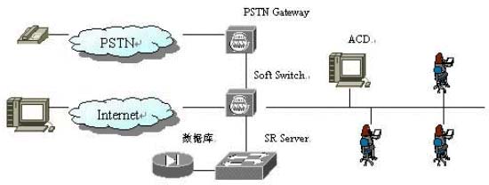 2. 由ACD響應,并將電話接入IVR(交互語音應答系統(tǒng)),詢問客戶需要幫助的類型,并將客戶的語音應答傳送到SR Server;