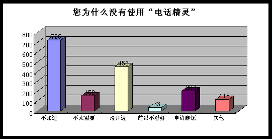 尚有相當多地區(qū)沒有開通此類服務(wù),用戶感到遺憾。在“您為什么沒有使用‘電話精靈’?”的統(tǒng)計結(jié)果中“當?shù)貨]有開通”是一項主要原因,有不少用戶都留言希望能將電話精靈業(yè)務(wù)在更廣泛地區(qū)應(yīng)用。曾經(jīng)使用過“電話精靈”,但后期由于運營商停止了此項業(yè)務(wù)而不再使用的用戶也深感遺憾。