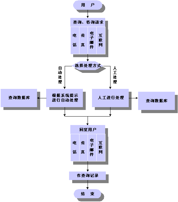 如:可開展信息咨詢業(yè)務(wù),為患者提供具體企業(yè)、事業(yè)單位的信息查詢,包括企業(yè)介紹、產(chǎn)品服務(wù)介紹、價格、功能、銷售地點、聯(lián)系電話、服務(wù)流程、辦事程序等。實現(xiàn)的方式包括口頭咨詢、語音服務(wù)、傳真服務(wù)、E-Mail等。系統(tǒng)對患者咨詢的反饋方式有:電話通知、傳真通知、人工回答、電子郵件。