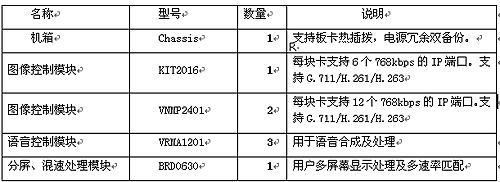 4、配置3塊12端口語音控制卡,每一塊控制卡支持12個(gè)會(huì)場(chǎng)接入。