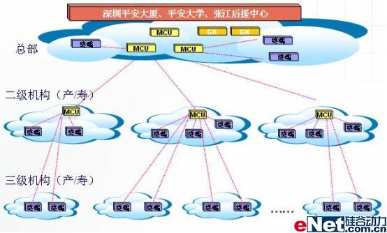 平安保險公司的視頻會議系統(tǒng)覆蓋公司產(chǎn)險、壽險、信托、銀行等各分支公司。從99年起,平安保險的視頻會議系統(tǒng)建設就未曾停滯過,至今年7月,已經(jīng)在產(chǎn)險和壽險兩大公司內(nèi)覆蓋至全國各地的三級機構(gòu),其他分公司也已經(jīng)覆蓋至全過二級機構(gòu)。公司全部使用POLYCOM視頻會議系統(tǒng)構(gòu)架其主要會議室,終端總數(shù)已超過四百臺,多點會議服務器(MCU)四十余臺,分布全國各地以及平安保險公司全球的各樞紐公司。預計至今年年底,平安保險的POLYCOM視頻會議系統(tǒng)將成為國內(nèi)最大的企業(yè)級視頻會議應用系統(tǒng)。