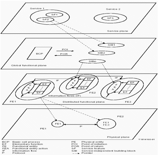Intelligent Network, IN-Conceptual Model, Service Plane, Global Functional Plane, Distributed Functional Plane, Physical Plane