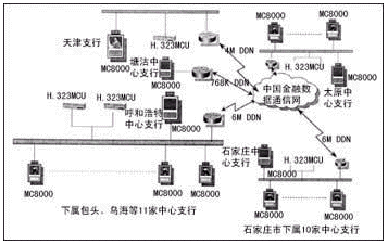 為推進(jìn)金融行業(yè)的金融電子化進(jìn)程,并充分利用中國國家金融數(shù)據(jù)通信網(wǎng)(CNFN)的資源,中國人民銀行天津大區(qū)行于1999年建立了首個運(yùn)行在CNFN上的基于IP的H.323電視會議網(wǎng),實(shí)現(xiàn)了華北范圍內(nèi)天津、內(nèi)蒙古、河北、山西兩省一區(qū)一市的36家人民銀行機(jī)構(gòu)的會議電視聯(lián)網(wǎng)。VCON公司提供的基于IP的H.323視頻會議第四代解決方案在該系統(tǒng)中發(fā)揮了重要作用。