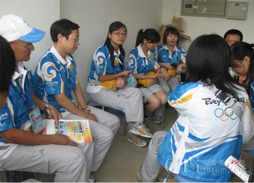 步入休息室,首先映入眼簾的就是語言支持志愿者們的“杰作”——寫滿各國語言的祝福字句的白板,異國文字熱情洋溢地感染著每個人的心。休息室里的崗前討論是呼叫中心的志愿者們工作日的前奏曲,俄、德、法、西班牙、羅馬尼亞志愿者們分享著自己語言支持的經驗和感觸。這一刻志愿者休息室頓時成為一個小小“聯(lián)合國”,雖是不同的語言文字卻完全沒有隔閡,因為大家為奧運為殘奧志愿服務的心貼的很親很近……