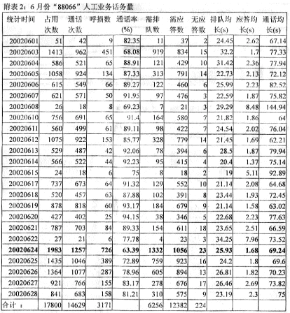 6月份"88066"人工業(yè)務(wù)話務(wù)量見附表2。