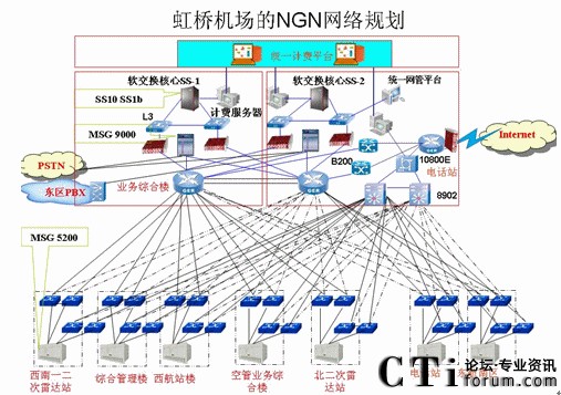 虹橋機(jī)場程控交換機(jī)新建和擴(kuò)容項(xiàng)目,實(shí)際上是一個(gè)包含多業(yè)務(wù)的項(xiàng)目和系統(tǒng),即以數(shù)據(jù)網(wǎng)絡(luò)作為基礎(chǔ)承載平臺(tái),軟交換作為核心技術(shù),為用戶提供了豐富的業(yè)務(wù),很好地解決了話音、數(shù)據(jù)業(yè)務(wù)的融合。