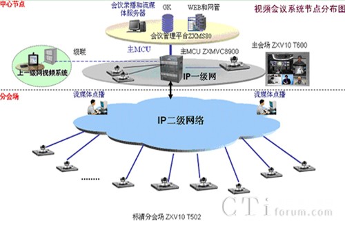 為此,中興通訊選擇了ZXMVC8900基于電信級交換機架構的MCU,而會場終端根據樂山地稅局的要求,我們分別采用ZXV10 T600 高清視頻終端,ZXV10 T502標清終端。全兼容智能視訊服務器ZXMVC8900采用電信交換機架構設計,全面支持ITU-T H.323、H.320協議,可通過不同網絡(IP、ISDN、DDN、SDH、ATM、衛(wèi)星等)接入用戶終端,并組織召開視頻會議,具有全兼容各種網絡、支持DVD級高清會議、支持H.264編解碼協議、H.460防火墻穿越、H.235加密、H.239雙視頻流、T.140短消息橫幅、終端主叫呼集等先進技術,最高支持8M帶寬和4CIF圖像分辨率,為用戶提供DVD級的高清晰會議體驗。采用單插板設計,在將來需求增加的時候可以通過增加板卡最大擴展至192路,充分保護用戶投資。ZXV10 T600是中興通訊推出的新一代分體式雙模高清視頻會議終端,支持1080P,720P高清編解碼和8M會議帶寬;支持H.320和H.323雙協議、藍牙技術、H.460防火墻穿越、H.235加密、H.239雙視頻流、T.140短消息橫幅、終端主叫呼集等最新技術。