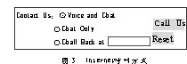 客戶服務(wù)中心系統(tǒng)提供的Internet服務(wù)方式包括:VoIP(即Internet上的語音交談)、Text Chat(文本方式的交談)、PSTN Call Back(電話回呼)、E-mail 以及伴隨瀏覽和網(wǎng)頁共享等(圖3)。