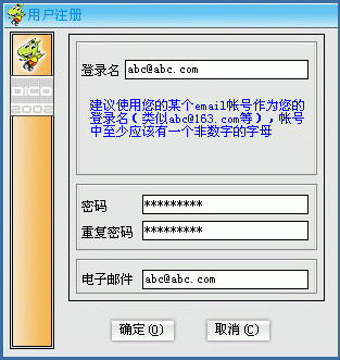 DICO下載后的安裝過程比較簡單: "接收協(xié)議"后一路"下一步"就OK了。然后是注冊,過程也委簡單:運(yùn)行后,第一次使用時(shí)點(diǎn)"注冊"(以后使用時(shí)只要輸入用戶名或密碼登錄就是了),隨后的"用戶注冊"窗口中填寫好相關(guān)的選項(xiàng)后點(diǎn)"確定"(下圖2)就OK了!