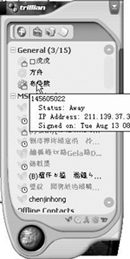 Trillian的最大好處就是整合了上述除QQ外的五大即時通訊產(chǎn)品。它不僅包括了好友上網(wǎng)提示、同一程序多重連接、表情圖示、對話記錄和離開/隱身等功能,還有統(tǒng)一的聯(lián)絡清單,讓用戶可以在一個界面內(nèi),同時看到不同通訊軟件的朋友的線上狀態(tài)。