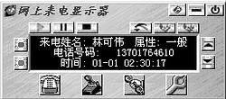 軟件簡介:主要解決用戶在撥號上網(wǎng)(不包括上網(wǎng)專線電話和部分虛擬小區(qū)用戶)的同時又不想錯過來電的矛盾。在你上網(wǎng)時一旦有人打電話給你,您就可以通過Netcaller得知來電信息,還可給對方播放諸如“請稍候打過來,我馬上斷線”、“您的電話號碼我已知道,稍候我會打過來”、“請撥打另一個號碼xxx”,“請留言”等等語音提示。