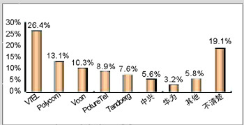 各品牌的認知度與其市場銷售情況息息相關(guān)。例如,VTEL是最早進入中國市場的視頻會議廠商,并在相當長的時期內(nèi)占據(jù)市場領(lǐng)先地位,取得顯著的品牌認知度是有其廣泛用戶基礎(chǔ)作為支撐的;Polycom雖然從1998年才開始進軍中國市場,但在基于IP的視頻會議系統(tǒng)的市場爭奪中取得較好的成績;PictureTel已經(jīng)被Polycom收購,品牌認知度也相對較低;而國內(nèi)品牌中興、華為剛剛起步,也很難達到較高的認知度。