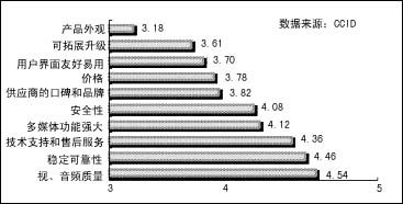 CCID對(duì)視頻會(huì)議現(xiàn)狀調(diào)查結(jié)果顯示,與以往相比,用戶對(duì)視頻會(huì)議終端系統(tǒng)的選擇標(biāo)準(zhǔn)已經(jīng)發(fā)生了變化。用戶除了一如既往地要求很好的音視頻質(zhì)量外,對(duì)產(chǎn)品的穩(wěn)定可靠性、技術(shù)支持和售后服務(wù)、多媒體功能、安全性四項(xiàng)也有要求。其中,用戶對(duì)視頻會(huì)議終端系統(tǒng)的多媒體功能和設(shè)備的可拓展升級(jí)提出了更高的要求,而不再局限于視音頻質(zhì)量和穩(wěn)定、可靠性上,對(duì)多媒體功能的需求在不斷地增長(zhǎng)。更多的用戶不僅把會(huì)議系統(tǒng)用于視音頻開會(huì),更將視頻會(huì)議的多媒體功能作為采購(gòu)的重要指標(biāo)之一。