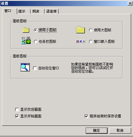 如果需要進(jìn)一步的調(diào)整,可以選擇菜單里的“設(shè)置……”。打開設(shè)置窗口(如圖3)。窗口共分四個(gè)選項(xiàng),每個(gè)選項(xiàng)里除了剛介紹的幾種常用功能調(diào)整外,還可以控制歡迎畫面、開始畫面、設(shè)定存儲(chǔ)等功能,規(guī)定提示速度、朗讀速度的快慢,選擇提示方式,設(shè)定提示報(bào)警條件。在“語音庫”選項(xiàng)中還可以選擇朗讀為男聲還是女聲。單擊“設(shè)置”按鈕,可以根據(jù)具體需要選擇“鍵盤”或“中文”里被朗讀標(biāo)點(diǎn)符號(hào)的種類(如圖4)。
