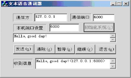 本文的基本設計思路: 通信方,將通話文本信息通過網絡傳輸到對方;對方接收到信息后,顯示信息并同時通過MSTTS 播放出來。