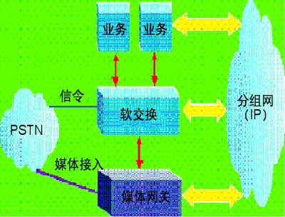 業(yè)界提出了一種設(shè)想,即把傳統(tǒng)的交換設(shè)備部件化,分為呼叫控制與媒體處理。呼叫控制實際上是運行在通用硬件平臺上的軟件,而媒體處理則把TDM信號轉(zhuǎn)換為基于IP的媒體流,二者之間采用標準協(xié)議鏈接,軟交換(SoftSwitch)由此誕生。由于軟交換技術(shù)具有擴充性強、接口標準化、