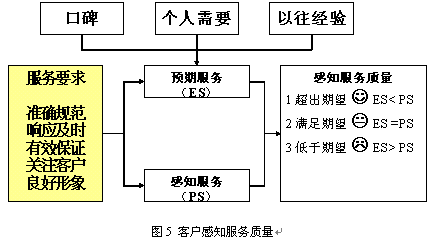 。。了解到制度規(guī)范的范圍,籌備人員有可能還是感覺到迷茫,這些規(guī)定要怎么制定呢?可以修改公司原來的資料,也可能是想到哪里寫到哪里。在這里,筆者的建議是從兩個方面去思考。第一是客戶方面,先要了解到客戶的需要和感知。下圖可以說明客戶是如何感受到優(yōu)質(zhì)服務(wù)的。