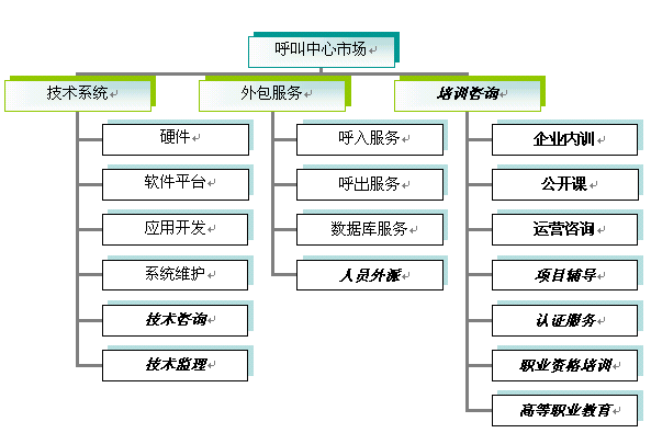·從專業(yè)來講,市場將分為客服人員技巧和素質(zhì)培訓(xùn)、管理人員培訓(xùn)、呼入運(yùn)營管理咨詢、電話營銷管理咨詢、技術(shù)咨詢、客服戰(zhàn)略咨詢等不同層面、不同對象的專業(yè)。市場將出現(xiàn)兩類公司,一類是綜合各個專業(yè)、提供一體化解決方案的公司,另一類是以某個專業(yè)為主營業(yè)務(wù)的公司,如電話營銷技巧專業(yè)培訓(xùn)。