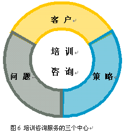 當(dāng)然,提升效果對于培訓(xùn)咨詢服務(wù)提供商來說是一個很高的要求,不但要有專業(yè)運(yùn)營經(jīng)驗和精深的行業(yè)知識,還需要從"以問題為中心"的思路過渡到關(guān)注"問題、客戶、策略"三個中心(如圖6 所示)。