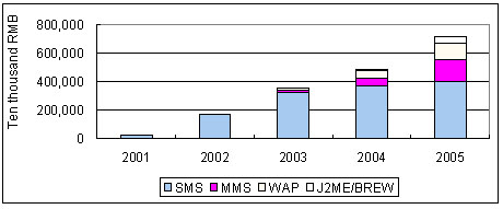 由于SMS、MMS、J2ME/BREW能帶來的收入較為可觀,目前整個(gè)移動(dòng)增值服務(wù)價(jià)值鏈的資金主要流向該三類業(yè)務(wù)。在SMS領(lǐng)域,產(chǎn)業(yè)鏈合作活躍,SP對(duì)游戲、交友、鈴聲、圖片等業(yè)務(wù)的投入很大;MMS適合點(diǎn)對(duì)點(diǎn)應(yīng)用以及信息點(diǎn)播服務(wù),市場(chǎng)潛力也很大;J2ME/BREW則以開發(fā)交互式業(yè)務(wù)為主,同時(shí)因是未來發(fā)展方向,屬于戰(zhàn)略性產(chǎn)品,倍受產(chǎn)業(yè)鏈的重視;WAP產(chǎn)品在移動(dòng)增值服務(wù)市場(chǎng)上將長(zhǎng)期存在,但占整個(gè)移動(dòng)增值服務(wù)市場(chǎng)的份額比較低。