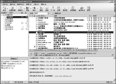 如果你的E-mail很多的話,就需要一個簡單的通信錄來記錄客戶或朋友的聯(lián)系方式,Dreammail的通信錄功能強大,支持郵件群組發(fā)送,可以取代那些功能單一的郵件群發(fā)工具,這對需要一次性將相同內(nèi)容的信件發(fā)送給多人的用戶來說,真是再方便不過了。