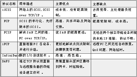 FCP有兩個比較明顯的劣勢: 一個是傳輸距離,采用光纖通道的FCP目前最多也只能達到10公里,如果要擴展,則需要使用其他相關(guān)協(xié)議;另一個是FCP需要構(gòu)建專門的存儲網(wǎng)絡(luò)和需要專門的光纖通道交換機,其安裝和維護成本均非常高。