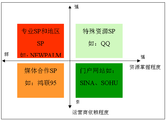 通常有風(fēng)險(xiǎn)資本注入,主要通過(guò)本地接入獲得運(yùn)營(yíng)商推廣支持而產(chǎn)生收入,大多具20個(gè)省以上短信接入并在當(dāng)?shù)卦O(shè)有市場(chǎng)人員,其它地區(qū)采用全網(wǎng)接入發(fā)展業(yè)務(wù),與運(yùn)營(yíng)商關(guān)系密切,業(yè)務(wù)主要以?shī)蕵?lè)服務(wù)為主:華友、掌中萬(wàn)維、靈通、空中網(wǎng);