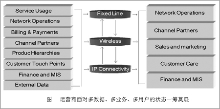 “很淺顯地說,就目前國內(nèi)運營商的分析水平而言,問題并不是出在工具上,對于一些省級運營商而言,無論是集成商、還是系統(tǒng),都可以說已經(jīng)采用了全球領(lǐng)先供應(yīng)商的產(chǎn)品,但具體到業(yè)務(wù)上,由于長期以來的模式尚未改變,有可能到客戶調(diào)查時才發(fā)現(xiàn),電話占用號碼的客戶已經(jīng)停機(jī)了,而調(diào)查人員卻不能實時看到業(yè)務(wù)收入表,更準(zhǔn)確地說,針對同一客戶,他用了哪些業(yè)務(wù)?是單一業(yè)務(wù)還是多種業(yè)務(wù)?是優(yōu)惠業(yè)務(wù)還是正常業(yè)務(wù)?服務(wù)坐席都有可能無法立即獲得實時數(shù)據(jù),這樣的前提下,再怎么說計費系統(tǒng)、融合業(yè)務(wù)、服務(wù)質(zhì)量,都不具現(xiàn)實意義!鄙綎|網(wǎng)通計費部門一位不愿意透露姓名的副主任級主管告訴記者。