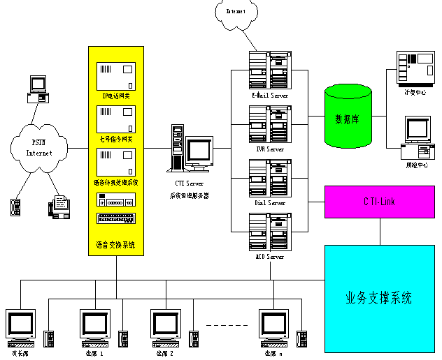 Telephony Integration 計算機電話系統(tǒng)集成)技術(shù)正是順應(yīng)這個時代的產(chǎn)物,CTI系統(tǒng)是集合程控交換機、電話語音、數(shù)據(jù)庫、