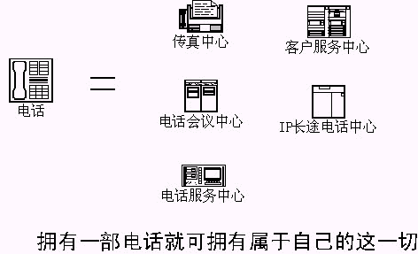 該方法的實施,可以讓每一個電話和強大的CTI系統(tǒng)聯(lián)系,一部電話將變成語音系統(tǒng)、傳真系統(tǒng)、電話會議系統(tǒng)、……。擁有這一切用戶只需要支付呼叫轉(zhuǎn)移的費用?梢栽O(shè)想,以后開辦公司,只要申請電話,擁有ADSL上網(wǎng)的電腦,用戶在辦公室、在家,打開電腦,單擊進入自己的語音系統(tǒng)、會議系統(tǒng),宣傳公司,召開會議,發(fā)送傳真。公司擁有、使用自己的、電信級的CTI系統(tǒng);所有CTI應(yīng)用系統(tǒng)的開發(fā),語音部分完全由電話接入服務(wù)商提供,……。