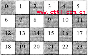 如圖3所示,陰影部分宏塊屬于片組0,白色部分屬于片組1。假設(shè)片組O在傳輸過程中丟失,由于丟失宏塊的相鄰宏塊都屬于片組1,這樣差錯恢復工具就會有更多的可利用信息來恢復丟失片的數(shù)據(jù)。