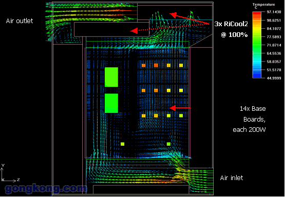根據(jù)13U ATCA Shelf,威圖公司做了熱量以及風量的模擬分析: