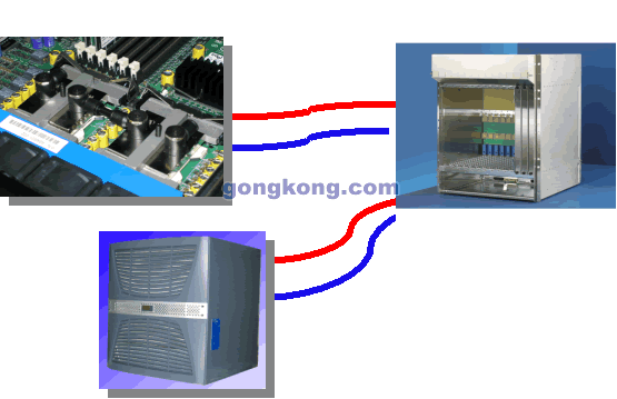 散熱原理: 由工業(yè)空調提供冷卻循環(huán)水,板卡上的“熱點”安裝液體散熱片,散熱片通過循環(huán)管道以及特殊連接器與背板連接,背板上由特殊連接器通過循環(huán)管道與工業(yè)空調的循環(huán)系統(tǒng)相連。板卡可以正常插拔,不會牽連循環(huán)管道。
