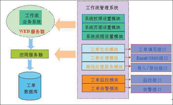 流程定制及參數(shù)設計模塊主要完成組織結構、工號、權限設置、其他配置參數(shù)設置(如獲取工單的數(shù)據(jù)路由等)。工單的離線處理模塊用于離線時將工單以郵件的方式發(fā)送到處理人的郵箱中,然后由處理人脫機進行處理,處理結果以郵件的方式發(fā)送到系統(tǒng)中,系統(tǒng)自動將郵件解析后合并到系統(tǒng)數(shù)據(jù)庫中,工單繼續(xù)進入下一個處理環(huán)節(jié)。電子工作流系統(tǒng)提供多渠道投訴一體化的支持,