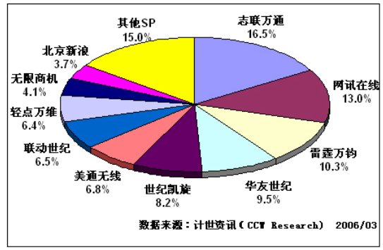 以上數(shù)據(jù)不難看出,中國(guó)的IVR業(yè)務(wù)已經(jīng)處于高度集中的狀態(tài),聯(lián)通業(yè)務(wù)中排名第一的志聯(lián)萬(wàn)通的市場(chǎng)份額已經(jīng)超過(guò)除前10家以外的所有SP企業(yè)的市場(chǎng)份額總和,而移動(dòng)業(yè)務(wù)的五強(qiáng)基本霸占了市場(chǎng)份額45%。計(jì)世資訊(CCW