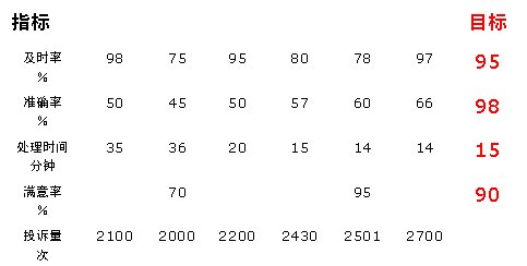 從處理時(shí)長(zhǎng)的角度來(lái)看:6月份的指標(biāo)值達(dá)到目標(biāo)值15份鐘的要求,處于達(dá)標(biāo)狀態(tài),從1-6月各月處理時(shí)長(zhǎng)的變化情況來(lái)看,也處于一個(gè)持續(xù)改進(jìn)狀態(tài),說(shuō)明在管理之下,該指標(biāo)得到了持續(xù)改善。因此,這是一個(gè)最好的指標(biāo),在持續(xù)改進(jìn)達(dá)到目標(biāo)值后,處于一個(gè)穩(wěn)定狀態(tài),對(duì)其管理是有效的。