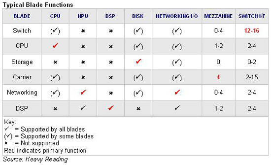 - 運營商刀片:具有四個mezzanine插槽但沒有全交換或網(wǎng)絡(luò)特點的node board。其中有些亦支持處理、存儲和I/O功能。